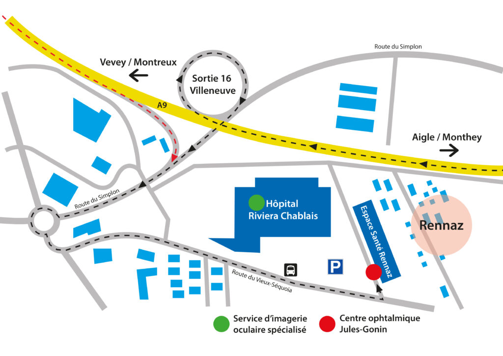 Depuis 2020, l’Hôpital ophtalmique Jules-Gonin, service universitaire d’ophtalmologie, propose différentes prestations à l’Espace Santé Rennaz et dans l’Hôpital Riviera Chablais.